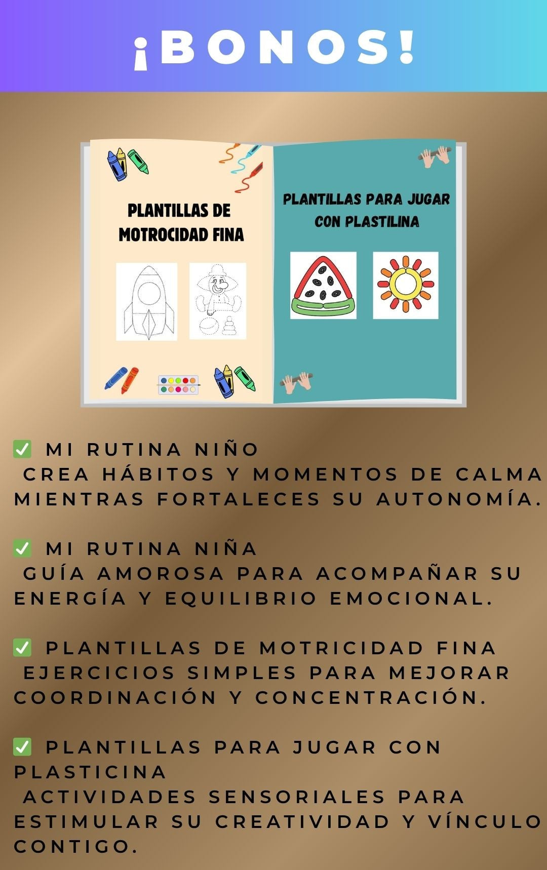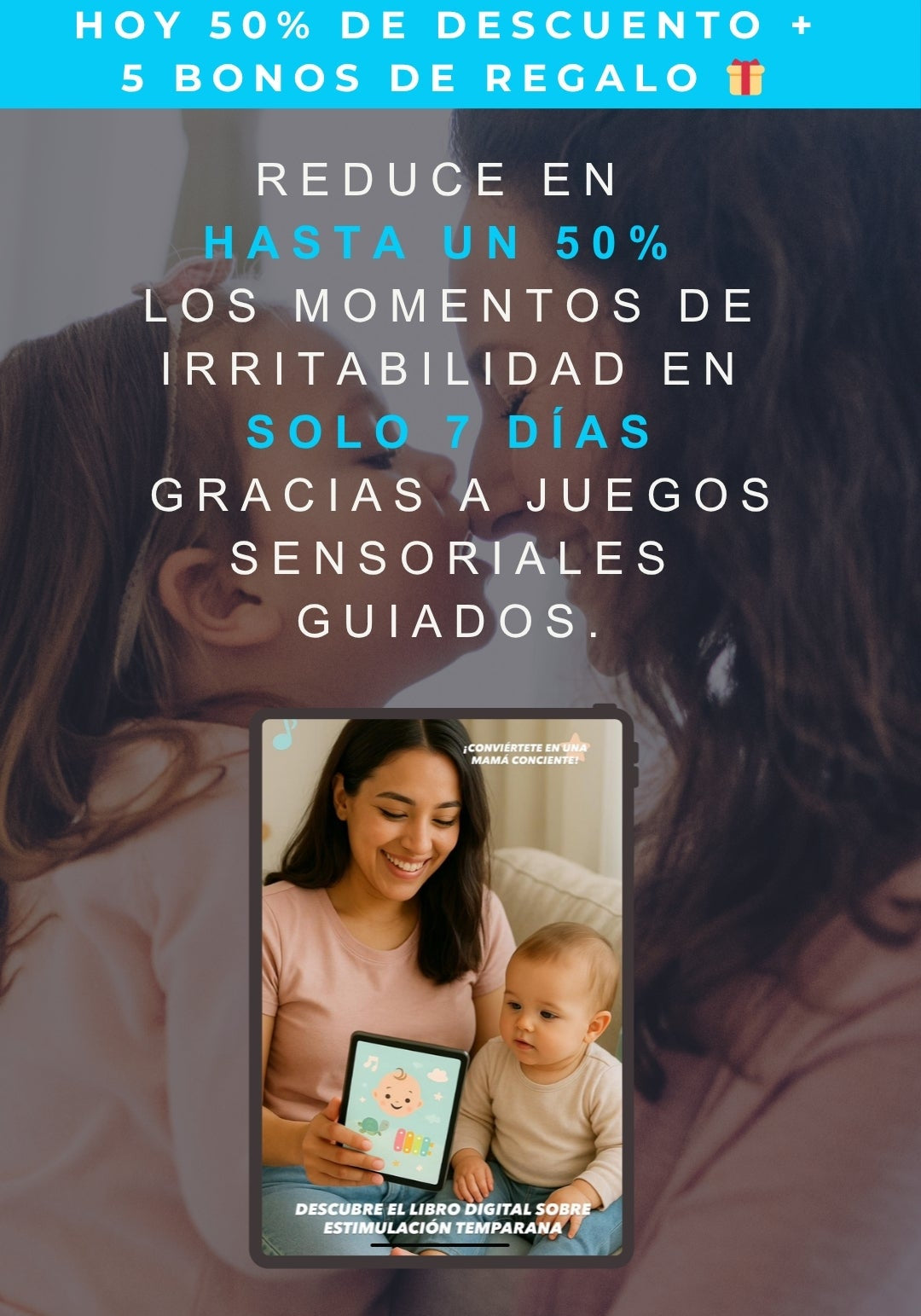 Ahí está la magia: este libro usa actividades sensoriales diseñadas para captar su atención y reducir irritabilidad. No forzamos, conectamos. Si no sonríe en la primera… tenemos más formas de llegar. 💛